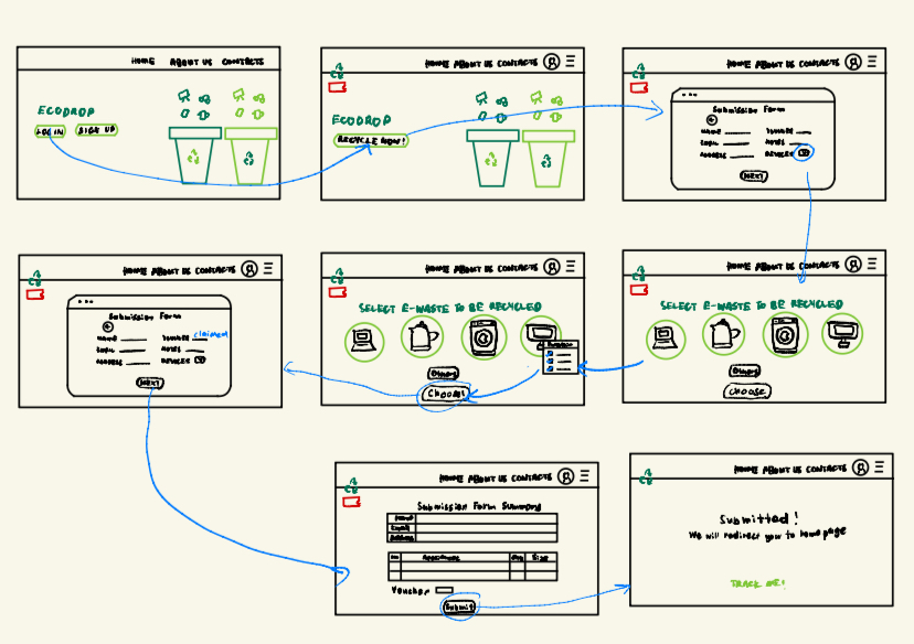 - Rule 7 : Support internal locus of control – User initiate actions themselves: LOG IN -> RECYCLE NOW -> SELECT DEVICES -> SUBMIT. Navigation menu and icons empower users to choose what to do next.